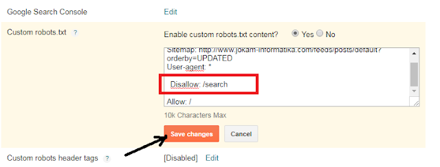 Maka dengan cara tersebut mesin perayap akan melewati halaman searching anda sehingga pengindexan akan terhindar pada halaman website anda tersebut.